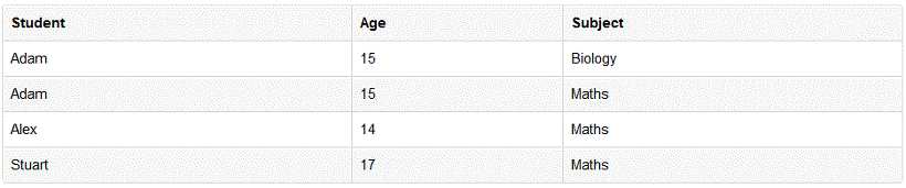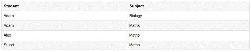 - 위 테이블의 경우 기본키는 (Student, Subject) 두 개로 볼 수 있습니다.이 두 개가 합쳐져야 한 로우를 구분할 수가 있습니다.