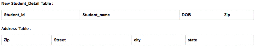 - 또한 여러명의 학생들이 같은 Zip코드를 갖는 경우에 Zip코드만 알면 Street, City, State가 결정되기 때문이 이 컬럼들에는 중복된 데이터가 생길 가능성이 있습니다.