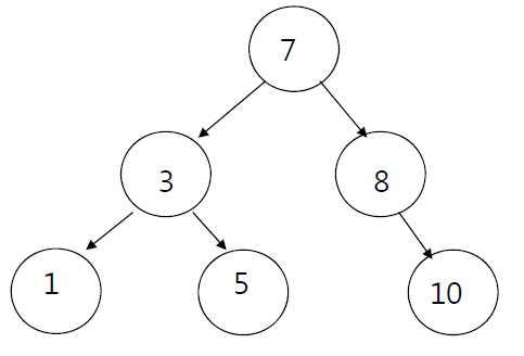 - 노드의 왼쪽 가지에는 노드의 값보다 작은 값들만 있고, 오른쪽 가지에는 큰 값들만 있도록 구성한 이진 트리의 일종