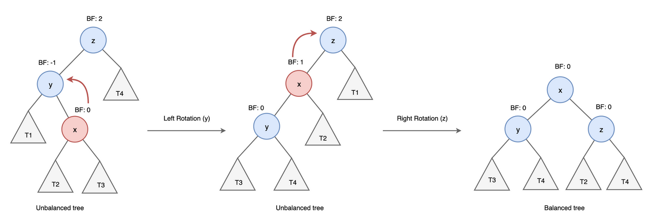 - 한쪽으로 치우친 편향 이진트리가 되면 트리의 높이가 높아지기 때문에 이를 방지하고자 높이 균형을 유지해줌