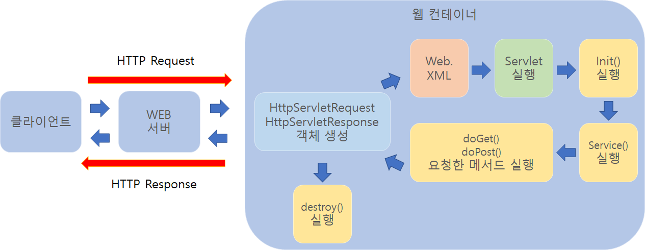 - 이때 HttpServletRequest, HttpServletResponse 에 의해 request, response 객체가 제공됩니다.