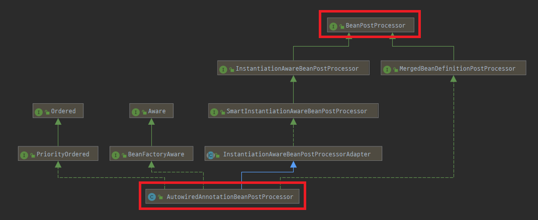 - IoC 컨테이너의 최상단에 있는 BeanFactory( ApplicationContext )가 BeanPostProcessor 타입의 Bean을 찾는다.(AutowiredAnnotationBeanPostProcessor)